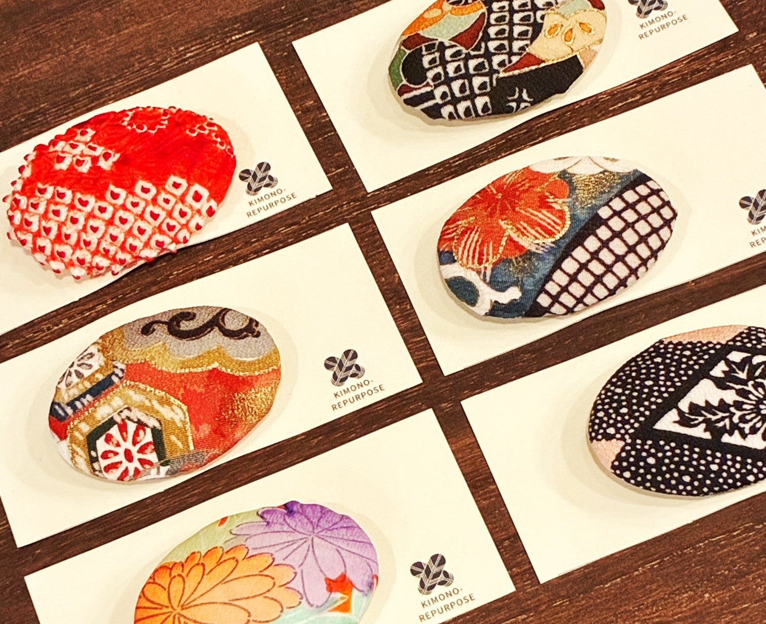 日本の伝統文化が息づく「着物」。その美しい文様や色彩を、現代の暮らしでも楽しんでいただきたい——そんな思いから誕生したのが、当店の ビンテージ着物ブローチ です。 ■ 古き良き着物や帯地をアップサイクル 仕立てられてから長い年月を重ね、今では着られなくなった着物や帯。そのまま眠らせてしまうには惜しいほどの美しい生地を丁寧にほどき、一つひとつ手仕事でアクセサリーとして仕立て直しています。 ヴィ...