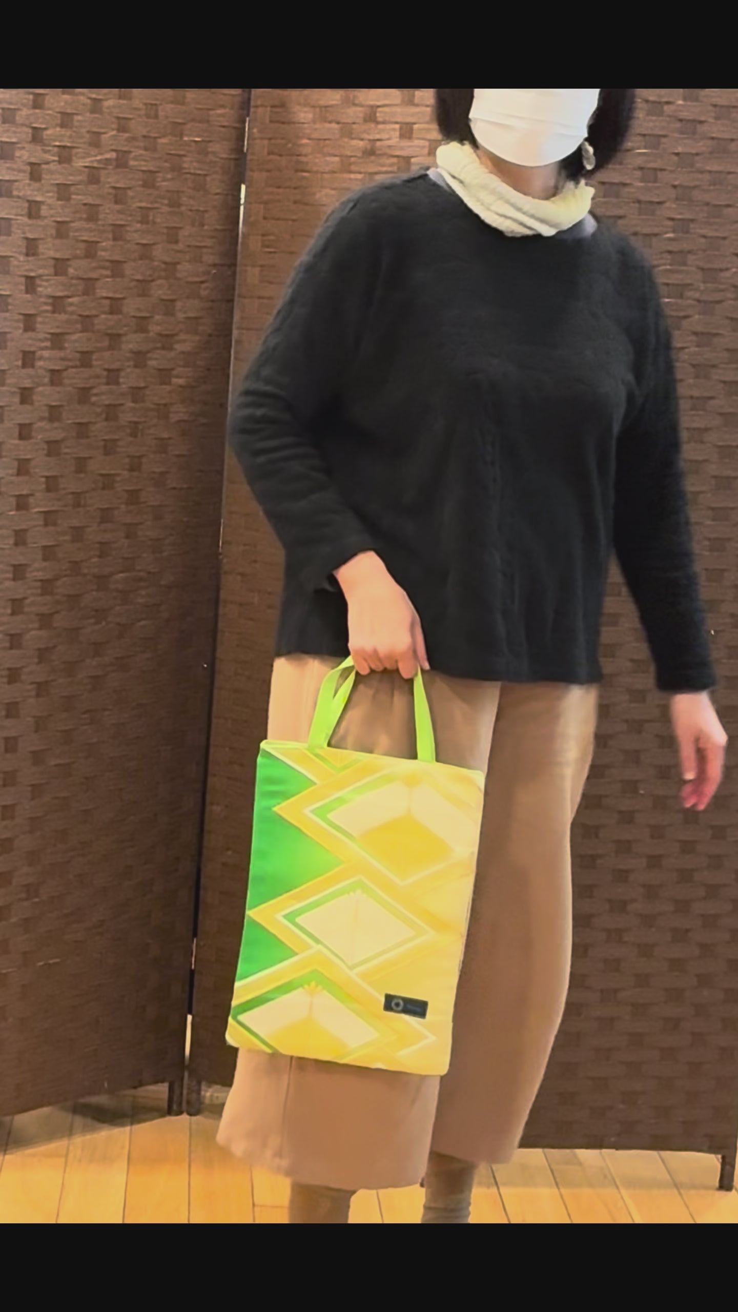帯で作成したバッグです。A4サイズの書類が入りますので、お稽古バッグにしても。