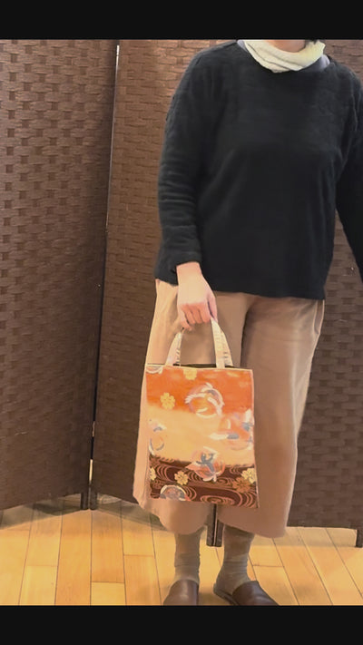 帯で作成したバッグです。A4サイズの書類が入りますので、お稽古バッグにしても。